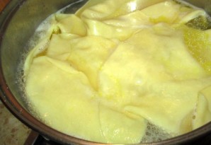 Опускаем лепешки в кипящий бульон и варим 5-7 минут.