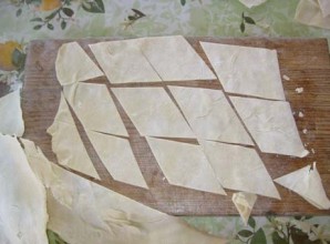 Далее нарезаем пласты на ромбы со стороной в 6 см.