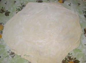 Каждый кусочек теста мы раскатываем в пласт шириной в 2 мм, посыпаем мукой и оставляем на 20 минут подсыхать.