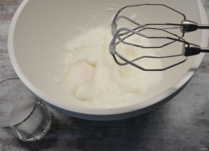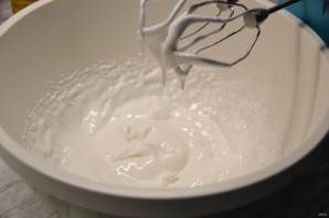 Добавьте в белки 2-3 капли лимонного сока и взбейте. Постепенно добавляя сахар взбивайте белки на высоких оборотах.