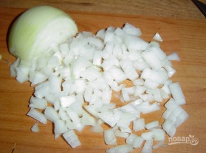 Почистите и нарубите мелко лук. Смешайте его с остальной массой.