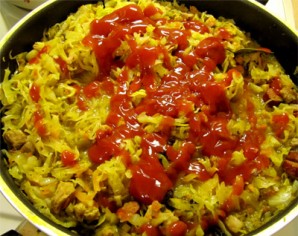 Добавляем кетчуп и тушим еще около 10 минут.