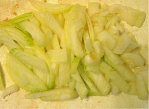 Полукольцами режем лук.