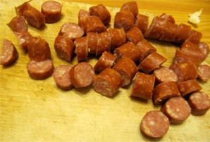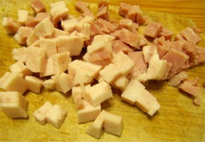 Нарезаем копчености.