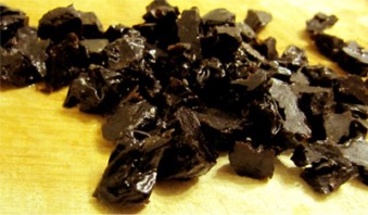 Запаренный на пару минут в кипятке чернослив, разрезаем на несколько частей (если надо удаляем косточки).