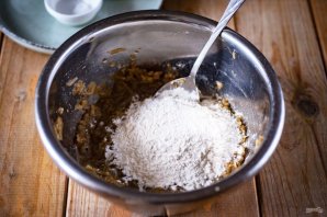 Вмешайте муку до получения однородного теста.