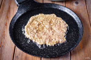 В сковороде разогрейте растительное масло и выложите порцию теста, формируя блинчик. Обжарьте блинчик с одной стороны на среднем огне до золотистости.