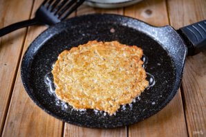 Затем блинчик переверните и обжарьте с другой стороны до золотистого оттенка.
