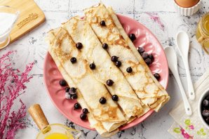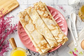 Выпечка готовится просто и быстро. Блины на воде получаются нежными и эластичными, идеально подойдут как для фаршировки, так и просто для подачи в самостоятельном виде. И конечно самое главное — они практически не уступают по своему вкусу блинам на молоке. Готовятся просто и достаточно быстро. Из указанного количества ингредиентов получается 10-14 штук в зависимости от диаметра сковороды. Если у вас большая компания едоков, смело готовьте двойную или тройную порцию. Берите рецепт на заметку Подавайте тёплым или охлаждённым. Идеально к чаю.
