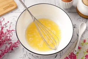 Перемешайте всё до исчезновения комочков и влейте масло.