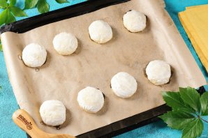 Выложите на противень, застеленный пергаментом. Смажьте сметаной и посыпьте сахаром. Выпекайте в духовке при температуре 180 градусов около 30 минут.