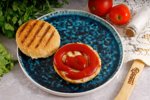 Низ каждой булочки смажьте кетчупом или любым другим соусом по вашему вкусу.