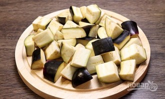 Баклажаны крупно нарежьте. Обсыпьте их солью и перемешайте. Затем промойте. Так уйдёт их горечь.