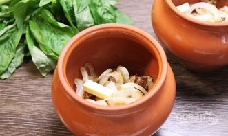 Далее выложите лук и кусочек сливочного масла.