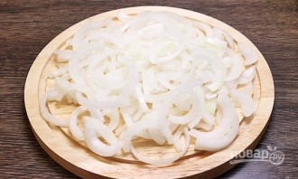 Очищенные луковицы нашинкуйте полукольцами.