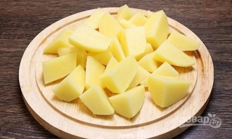 Промытый и очищенный картофель нарежьте крупными дольками.