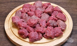 Мясо нарубите средники кусочками.