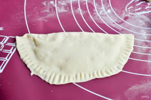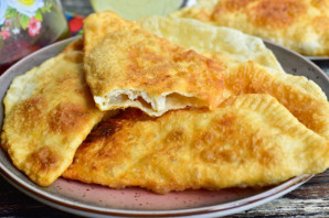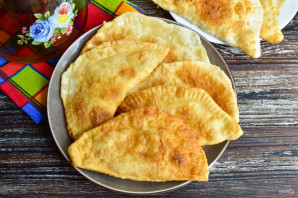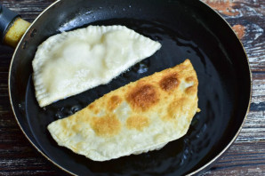 В сковороде разогрейте растительное масло. Выложите чебуреки. Жарьте их на умеренном огне до красивого и золотистого цвета с двух сторон.