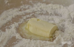 Добавьте к муке кусочек сливочного масла, распустите его и перемешайте с мукой. Затем слегка обжарьте на маленьком огне оба ингредиента.