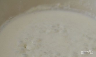 Влейте в сковороду жирные сливки. Тщательно перемешайте их со сливочно-мучной массой, томите соус на маленьком огне в течение пяти минут.