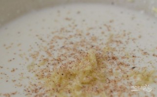 Чеснок очистите от шелухи, пропустите его через пресс или натрите на мелкой терке. Выложите чеснок в сковороду к остальным ингредиентам и добавьте немного мускатного ореха. Помешайте и снимите соус с плиты. Подавайте охлажденным.