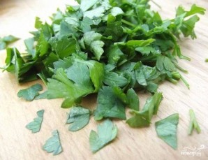 Промойте и высушите зелень бумажным полотенцем. Мелко ее нашинкуйте.