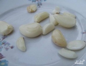 Чеснок почистите. Пропустите его через чеснокодавилку или же изрубите острым ножом в мелкую крошку.