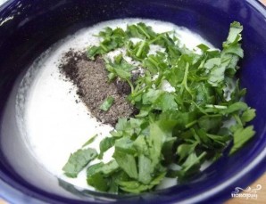 В сметану добавьте соль, перец, зелень и чеснок.