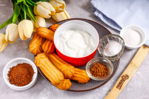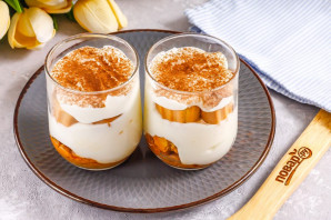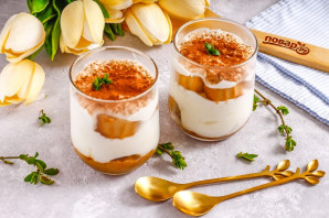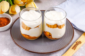 Присыпьте десерт какао-порошком и поместите в холодильник на 30-40 минут для пропитывания.