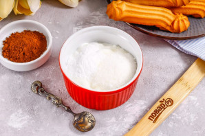 Перемешайте сметану с сахаром и загустителем в течение 1-2 минут.