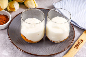 Быстро выложите печенье в емкости: стаканы, чашки, пиалы, так как оно моментально размокает.