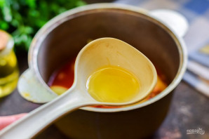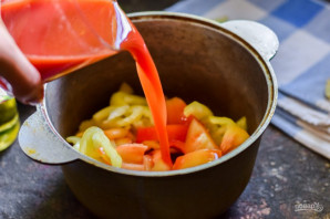 Теперь влейте в кастрюлю томатный сок.