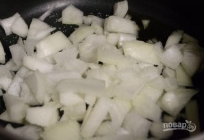 1. Очистите лук, нарежьте его мелко. Разогрейте кастрюлю с оливковым маслом и выложите лук, обжаривайте его 5-7 минут на среднем огне.