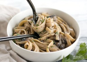 Нежная сливочная паста – это вкусно и быстро. Грибы готовятся за считанные минуты, в это же время можно отварить пасту, затем надо смешать все ингредиенты. Вот вам и весь рецепт приготовления. Подавайте пасту сразу же после приготовления. А вот соус можно сделать заранее. А если сделали много, тогда храните в холодильнике и разогрейте перед подачей