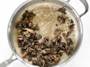 3. Добавьте в сотейник грибы, обжаривайте все 5-7 минут, чтобы грибы подрумянились.