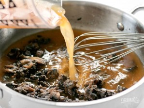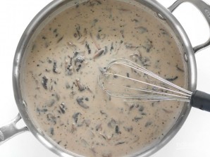 7. Как только соус приобрел густую консистенцию, влейте сливки.