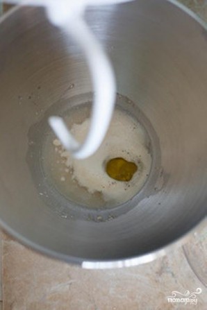 Растворяем дрожжи в небольшом количестве воды, туда же добавляем сахар. Оставляем эту смесь минут на 5-10.