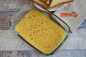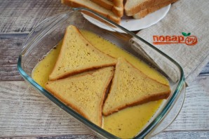 Ломтики хлеба окуните в смесь, чтобы они хорошо пропитались с двух сторон.