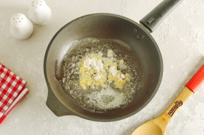 В сковороде растопите кусочек сливочного масла, добавьте муку и обжарьте помешивая пару минут.