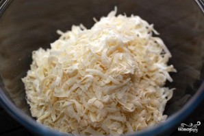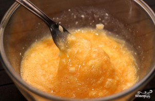 Смешиваем тертый сыр с яйцами, хорошенько перемешиваем.
