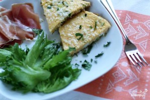 Нарезаем фриттату на кусочки и подаем в горячем виде.