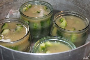За это время огурцы дадут сок и у нас получится отличный рассол, которым мы и будем их заливать.