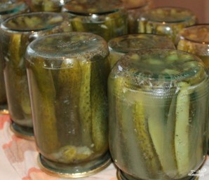 Потом банки укутайте, пускай остывают. Готовые горчичные огурчики на зиму можете хранить в погребе или холодном месте.