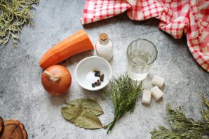Подготовьте все необходимые ингредиенты для приготовления горячего маринада для рыбы. Овощи почистите, вымойте.