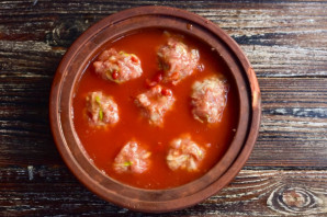 Залейте тефтели соусом и отправьте их в духовку на 45-50 минут. Температуру установите 190 градусов.