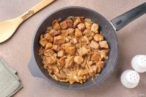 Мясо нарежьте небольшими кубиками.
