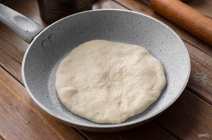 На сухой сковороде в течение 3-4 минут обжарьте лепешку с двух сторон, она надуется в процессе обжаривания.