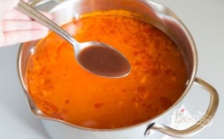 9. Влейте в харчо соус "Ткемали", добавьте толченые орехи, варите еще минут 5. После снимите с огня и оставьте на полчаса под крышкой. Перед подачей дополните свежей кинзой или петрушкой.