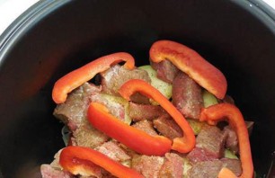 Включите режим «Тушение» на 1 час 20 минут. Готовое блюдо украсьте веточками зелени.