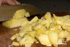 Картофель очистить от кожуры и нарезать мелкими кубиками.